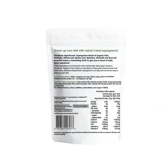 Matakana Superfoods SuperGreens Top 7 Organic Super Green Powders 200g pouch